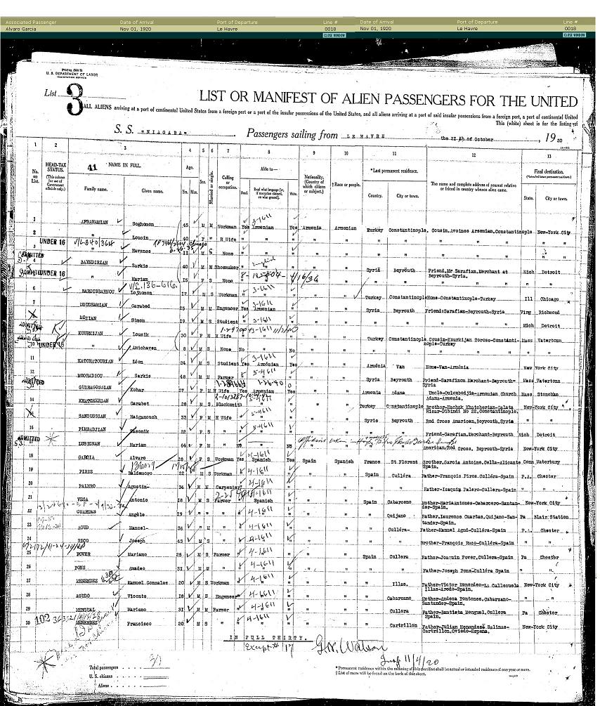 Hui hem rebut una donació extraordinària per a l’Arxiu, fruit de la recerca de la nostra companya Glòria Alemany. Es tracta dels documents que certifiquen l’arribada del sellard Álvaro García a Nova York, l’any 1920. El Tio Álvaro Moliner va emigrar als Estats Units, com tants altres europeus, en les primeres dècades del segle XX, forçat per una difícil situació econòmica i, també, per un esperit emprenedor. Tenia 28 anys.