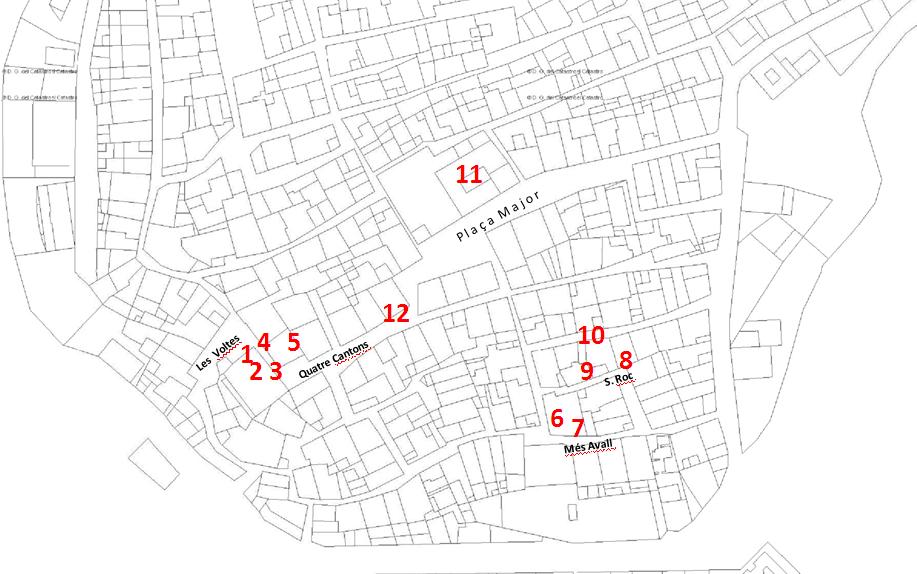 | (1 i 2). La monumental Casa de la Tia Cecilia, que se situa entre els carrers Quatre Cantons i Les Voltes, antic accés a Sella pel camí reial